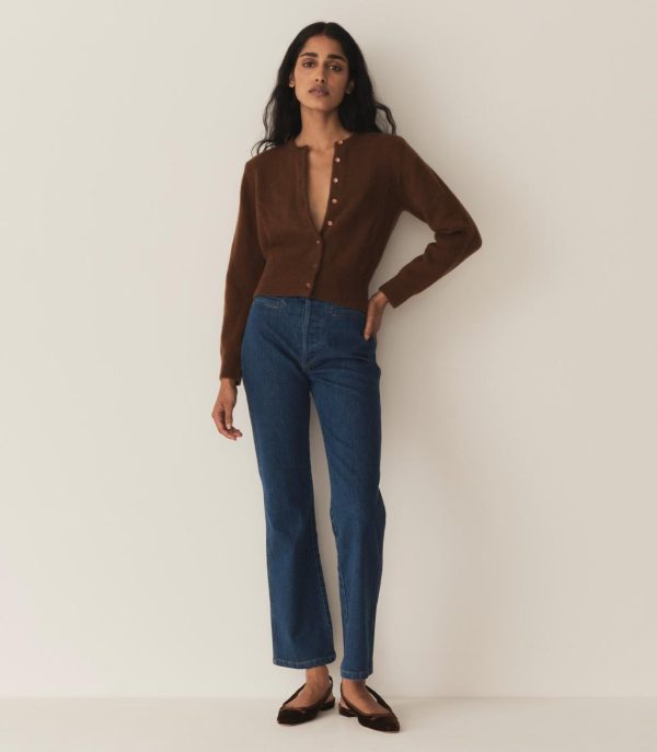 In sumptuous 100% cashmere, the Fairchild Cashmere Cardigan—one of our co-founder Katherine’s favorites—features a crew neck, a fitted silhouette, full-length sleeves, mother-of-pearl buttons, and ribbing at the neckline, sleeve cuffs, and hem.