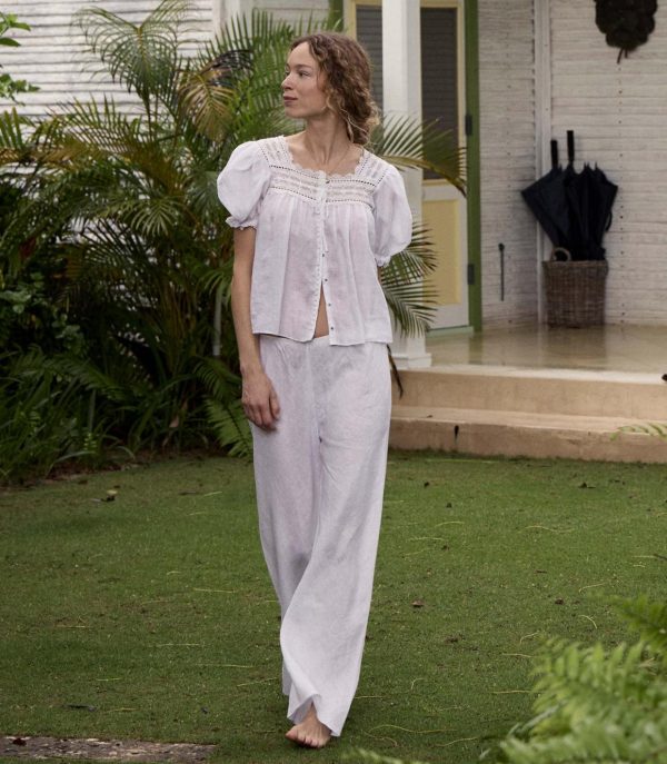 In soft midweight linen, the Lavon Linen Pant—a favorite of our co-founders, Margaret and Katherine—is an effortless pull-on bias-cut style with a wide leg and a high waist trimmed with elastic scallop detailing.