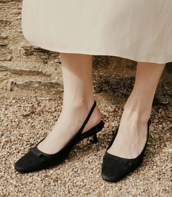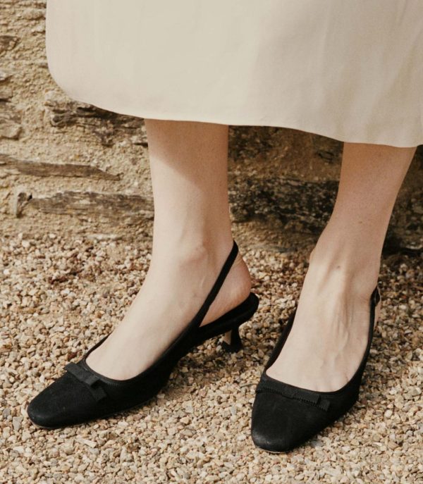 Handcrafted in Italy from supple suede, the Willamina Slingback features an elongated squared-off toe, a soft leather lining, our signature grosgrain trim, a sweet grosgrain bow detail, a curved kitten heel, and a slender ankle strap with a petite buckle.
