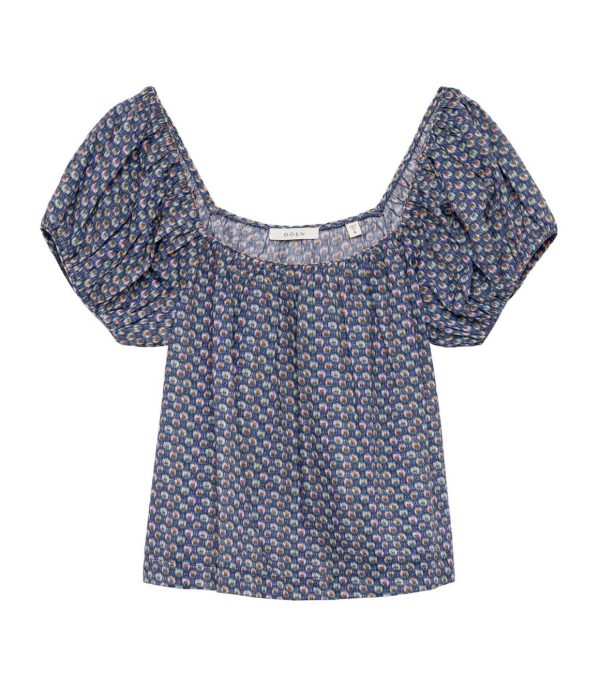 Rendered in a soft, lightweight cotton voile, the Tonya Top is an easy pullover style with a square neckline, short puffed sleeves, and a breezy, slightly cropped cut.
